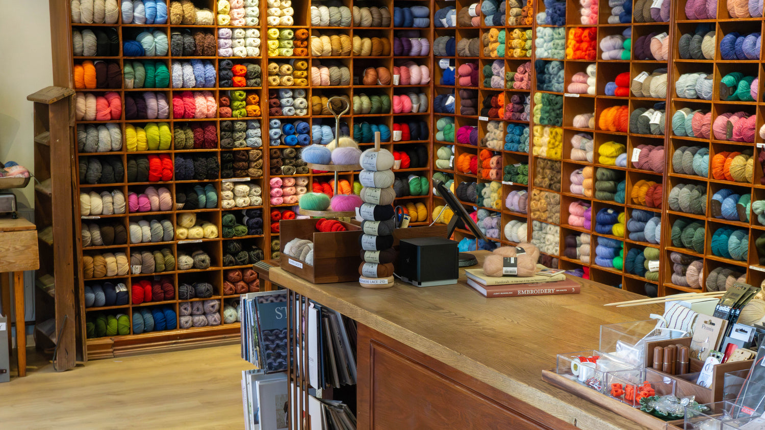 Hos oss finns garn, mönster, stramaljbroderier, tillbehör och presentkort, med butik i Stockholm sedan 1990.