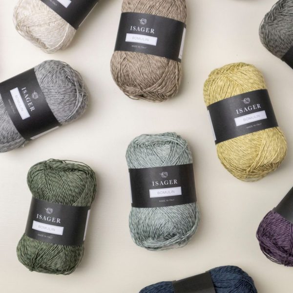 Bomulin från Isager är ett fint "sommargarn" som består av 65 % bomull och 35 % lin, spunnet och färgat i Italien. Garnet är lätt och vackert, vilket gör det särskilt lämpligt för barnkläder eller svala sommarblusar.